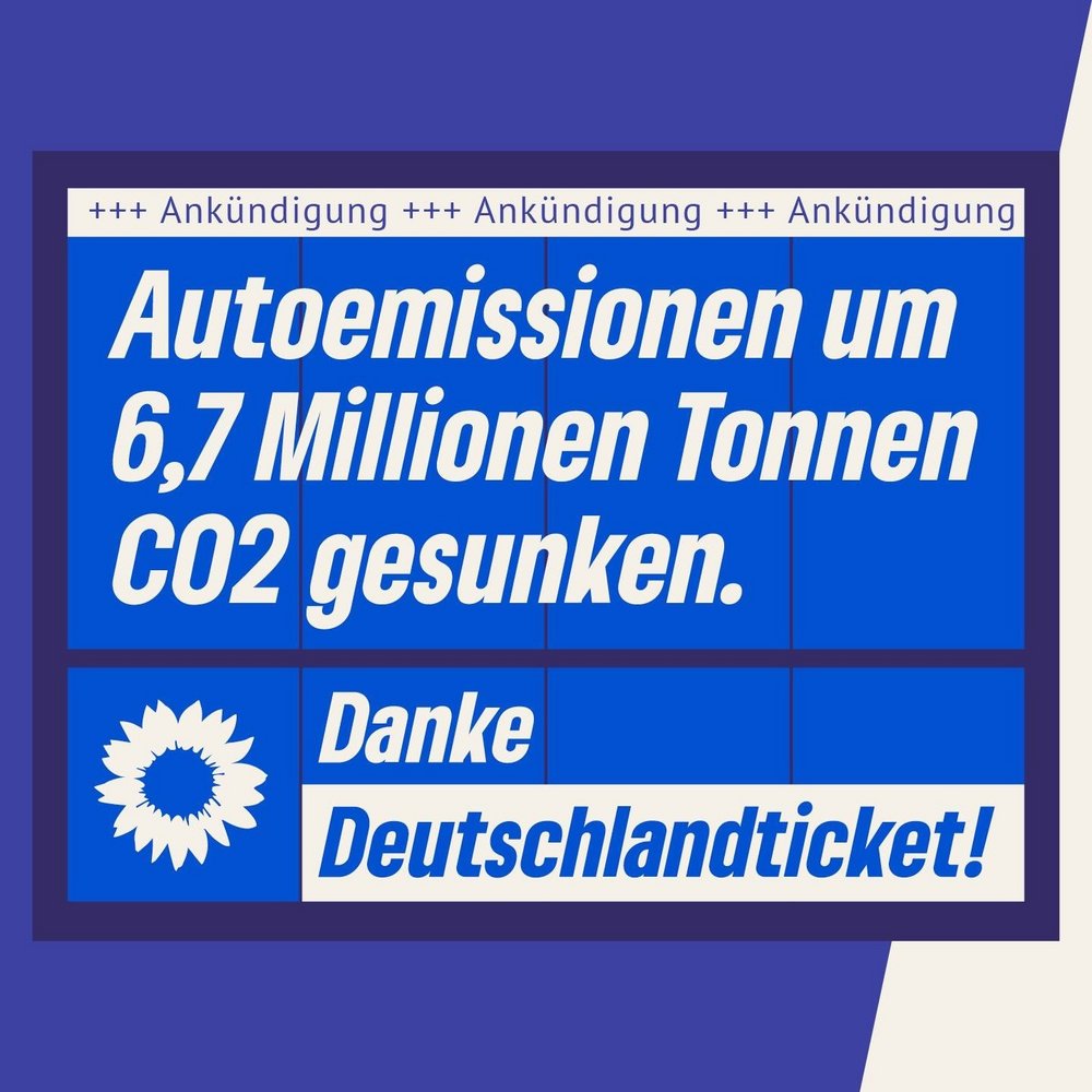 Durch die Einführung des bezahlbaren ÖPNV-Tickets in Deutschland konnten die CO2-Emissionen des gesamten Verkehrssektors um 4,7% gesenkt werden. In absoluten Zahlen bedeutet das eine Einsparung von 6,7 Millionen Tonnen! Das Deutschlandticket ist also nicht nur aus sozialen Gründen für viele Menschen so wichtig, für die ein teures Bahn-Abo vorher nicht drin war, sondern leistet auch einen wichtigen Beitrag für mehr Klimaschutz.
