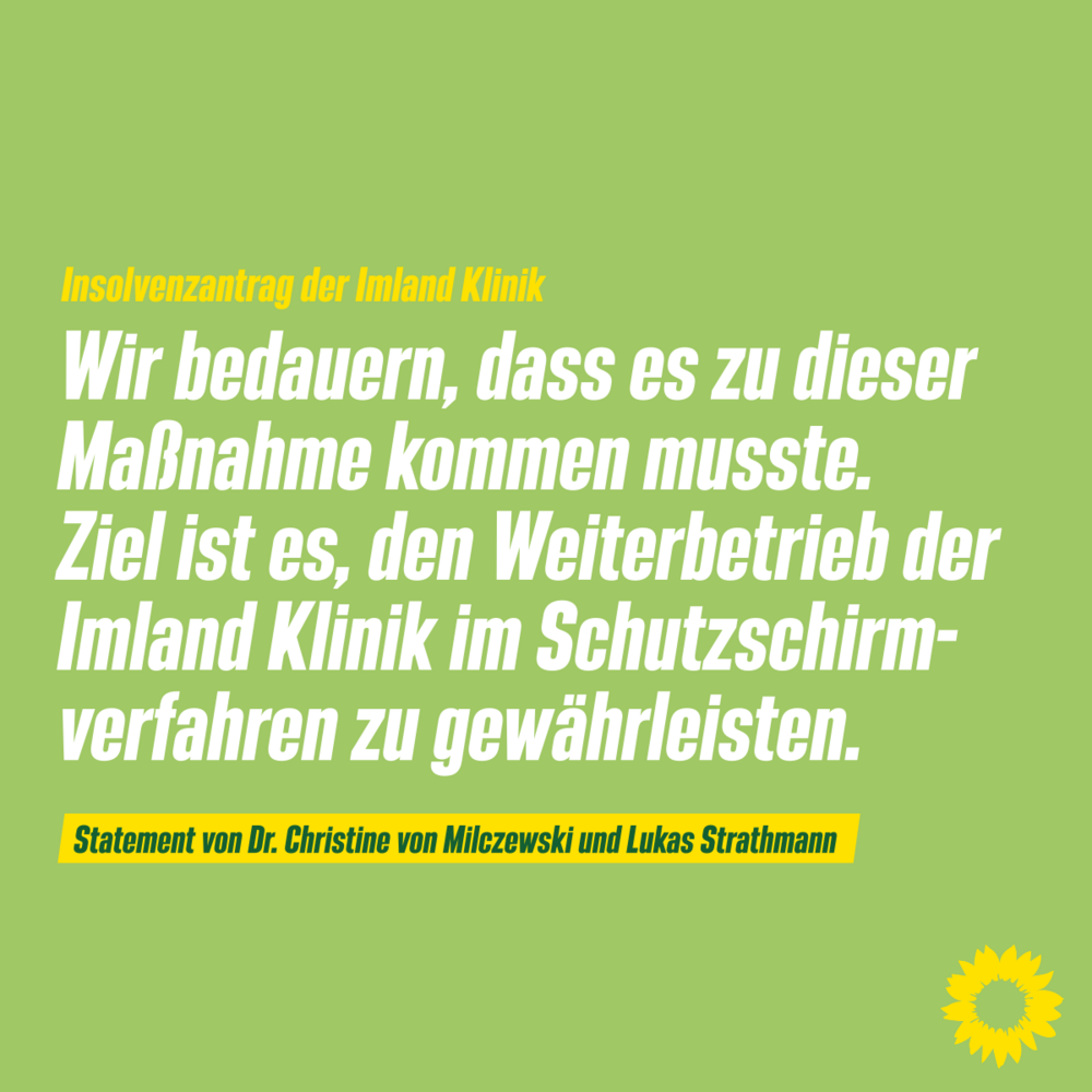 Die Grüne Kreistagsfraktion hofft, dass als Ergebnis der ernsthaften Sanierungsbemühungen aller Beteiligten die Imland Klinik in öffentlicher Hand bleiben wird. „Im Sanierungsprozess der Klinik werden leider nicht alle unsere Wünsche erfüllbar sein, die wir als Bürgerinnen und Bürger an eine gute wohnortnahe medizinische Versorgung haben“, erklärt die Fraktionsvorsitzende Christine von Milczewski. „Diese Wünsche haben die Bürgerinnen und Bürger mit der Abstimmung im Bürgerentscheid deutlich gemacht, ohne zu ahnen, dass die finanzielle Lage der Imland Klinik so prekär ist, dass die Insolvenz kurz vor der Tür steht. Bei dem Bürgerentscheid war kein „Preisschild dran.“ Die Finanzierung der Klinik über die auf Bundesebene festgesetzten Fallpauschalen ist hochgradig defizitär. Hinzu kommen die explodierenden Energiekosten, die das Klinikbudget zusätzlich belasten. Der Kreis wird seinen finanziellen Sanierungsbeitrag leisten, darf aber nicht seine anderen öffentlichen Aufgaben vernachlässigen. Lukas Strathmann erklärt weiterhin: „Auch die Fehlersuche in der Vergangenheit beendet nicht den finanziellen Schlamassel, in der sich die Klinik mit allen Mitarbeitenden befindet.“ Mit Blick auf die öffentlich geäußerten Vorwürfe gegen die Geschäftsführer der Klinik und Mitglieder des Aufsichtsrats bittet Christine von Milczewski darum, den Blick in die Zukunft zu richten. „Mit einer Kultur der wechselseitigen Schuldzuweisungen kommen wir nicht weiter.“