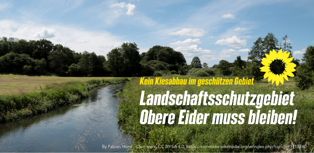 An der Position der GRÜNEN Kreistagsfraktion Rendsburg-Eckernförde zum Kiesabbau im Landschaftsschutzgebiet „Obere Eider“ hat sich seit Jahren nichts geändert: Wir bleiben bei unserem Nein zur Zerstörung der Landschaft und der möglichen Beeinträchtigung des Bodenwasserhaushalts im Eidertal.
