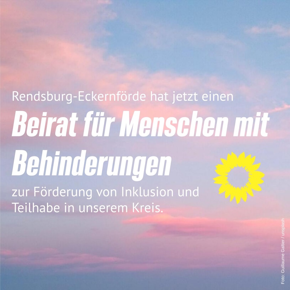 Ein Beirat für Menschen mit Behinderungen gewährleistet die politische Partizipation von Menschen mit Behinderungen auf Kreisebene. Der Beirat kann der Verwaltung und der Kommunalpolitik Vorschläge zur Umsetzung von Maßnahmen für Menschen mit Behinderungen machen. Er wird unterstützt durch eine organisatorische Gremienbetreuung in der Kreisverwaltung. Vorsitzender des Beirats ist der Beauftragte des Kreises Rendsburg-Eckernförde für Menschen mit Behinderung.