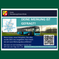 Du kannst noch bis zum 31.5.24 online deine Kommentare zum Regionalverkehr bei uns im Kreis abgeben. Die Umfrage findest du unter www.kreis-rendsburg-eckernfoerde.de/bauen-mobilitaet/oepnv.