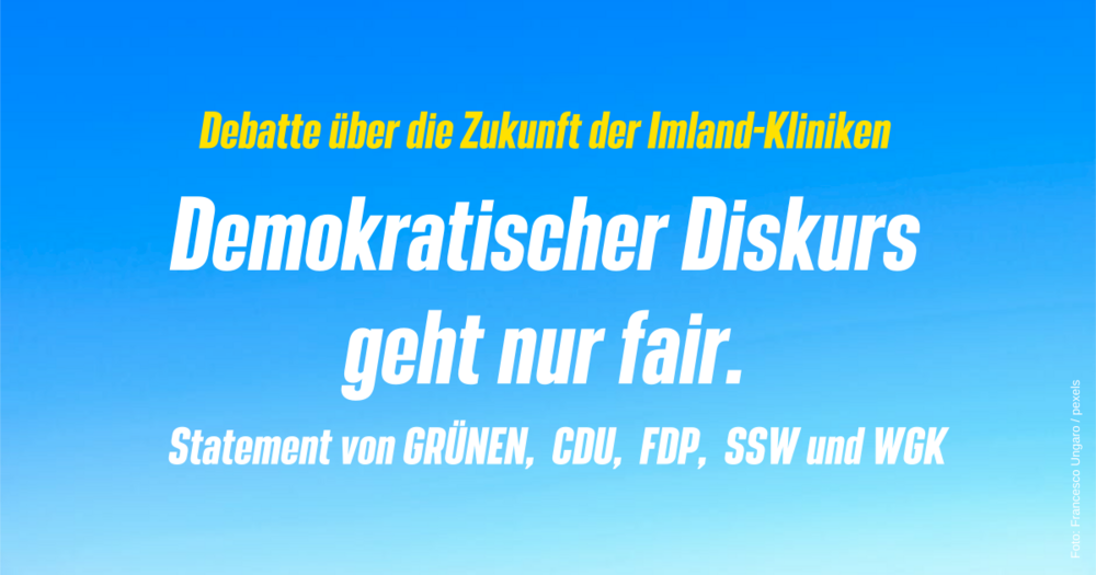 Die Fraktionen von CDU, Bündnis 90/Die Grünen, FDP, SSW und WGK rufen zur Mäßigung in der öffentlichen Auseinandersetzung um die zukünftige Medizinstrategie der Imland Kliniken auf.